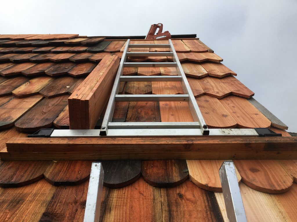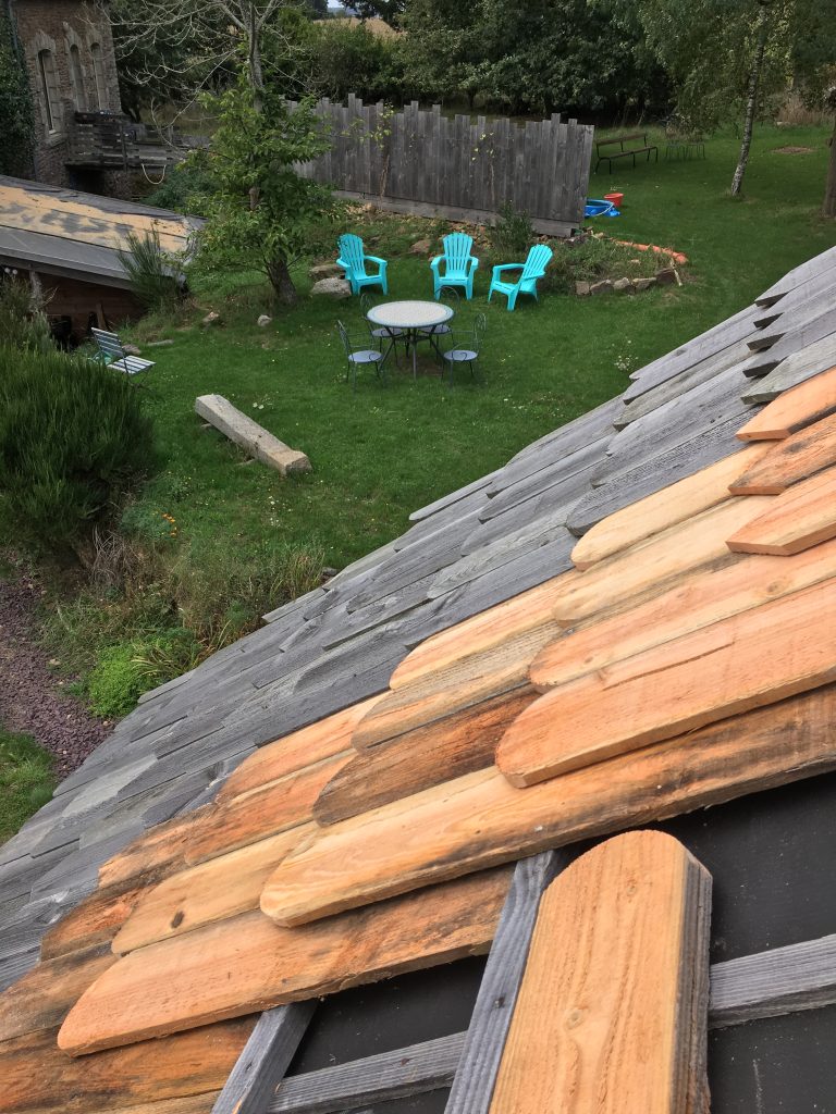 J’avais déjà réalisé une toiture en bardeau de Douglas pour notre petit gîte de l’oncle Edmond en octobre 2019.