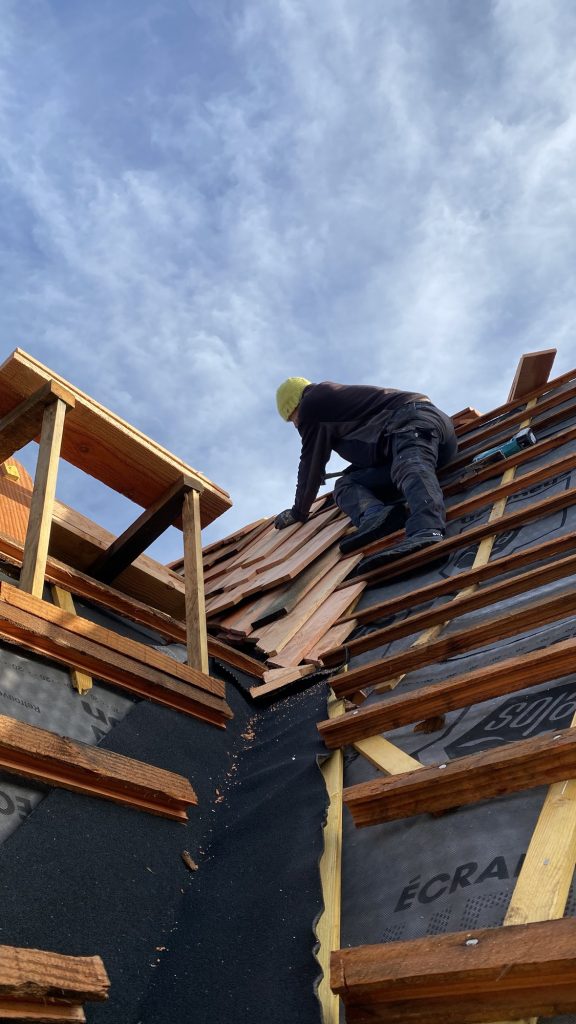 J’avais déjà réalisé une toiture en bardeau de Douglas pour notre petit gîte de l’oncle Edmond en octobre 2019.
